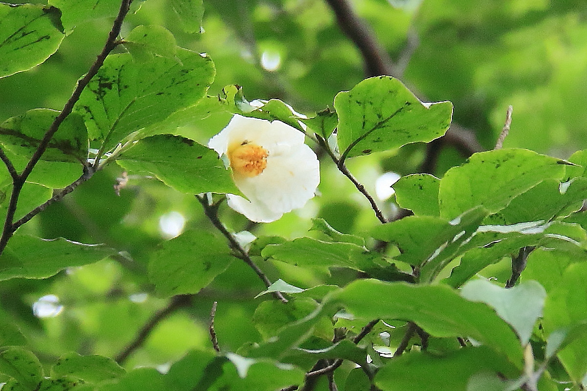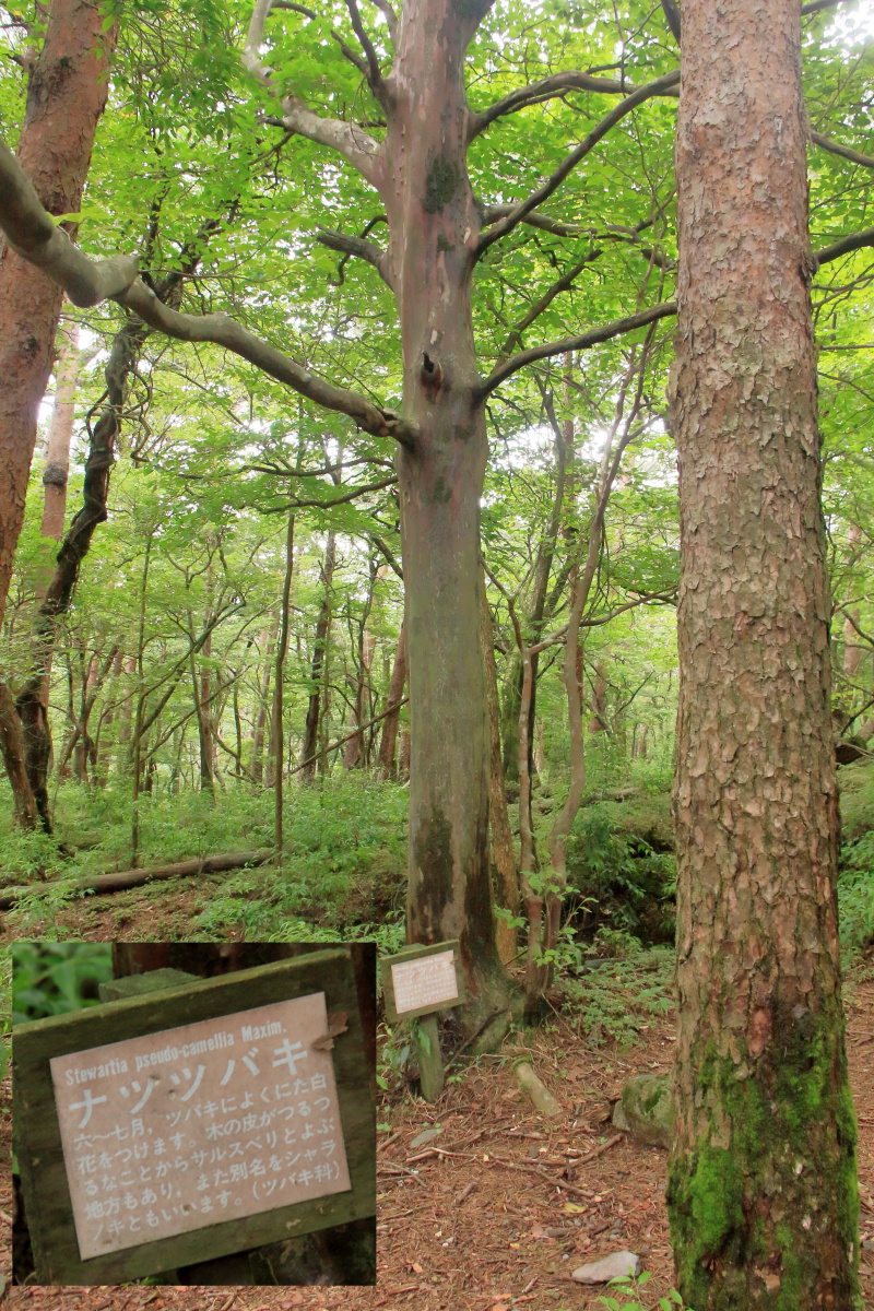 (4-2)*なつつばきと標識(花期7月下旬〜8月上旬))