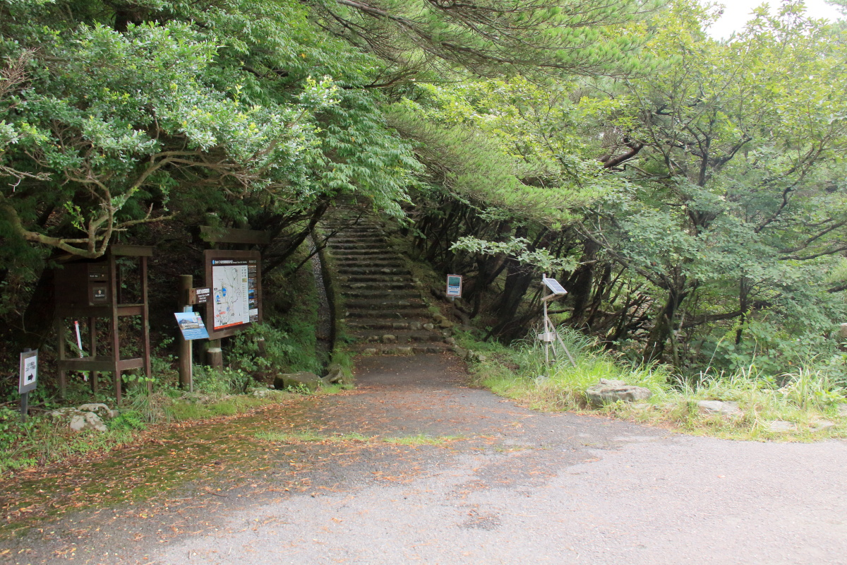 (1-1)*早朝新燃岳噴火(噴煙5000m級)のニュースもあり登山客も少ない様でした (1-1)*レストラン前を登山口へ |