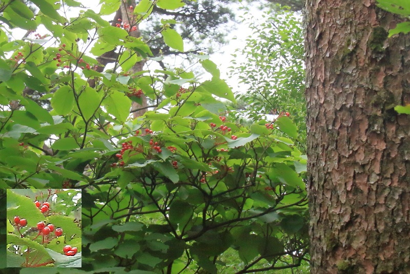 (5-2)*ななかまど *高い所に枝葉が有ります 登山道の落葉を目安に* (5-2)*分岐迄少し急坂 |