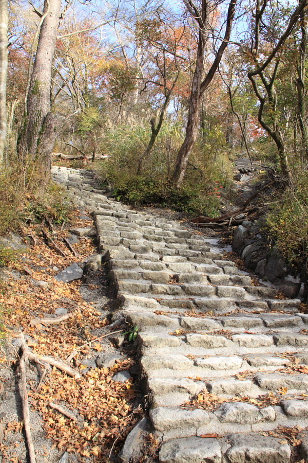 (6-4)此処のムラサキシキブは鮮やかです 10/28 石組みの階段が続きます (6-5)解禁当初は礫で覆われ歩きにくいでしたが整地していただきました |